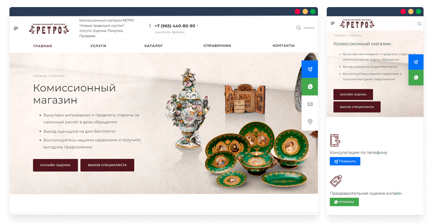 Задачи: Клиент обратился в нашу компанию с просьбой создать сайт антикварной лавки и комиссионного магазина 2 в 1, разработать индивидуальный дизайн, проработать и наполнить главную страницу и страниц услуг для возможности дальнейшего продвижения ресурса в поисковых системах.