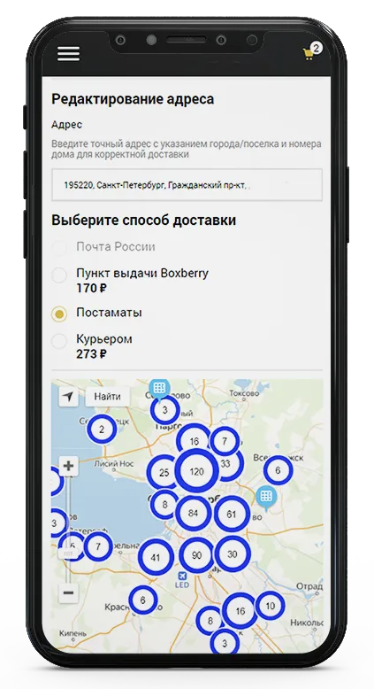Местоположения постаматов и пунктов выдачи заказов на карте
